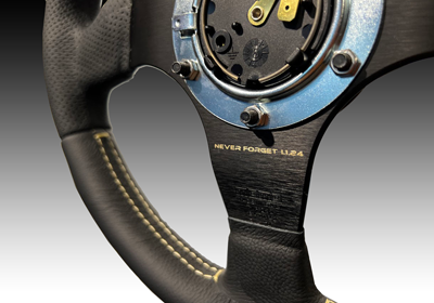 「RACE NOTO(能登)」は輪島塗をイメージして、黒を基調にステッチやロゴはゴールドを採用。復興の願いを込めてスポーク裏に「NEVER FORGET 1.1.24」の文字を刻ませていただきました。