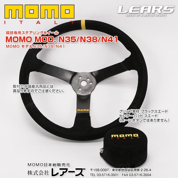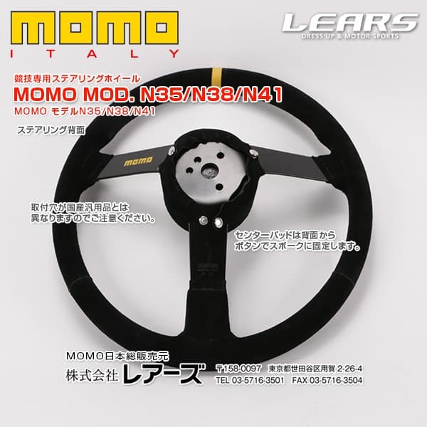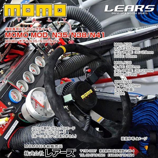 MOD.N35/38/41はストックカー仕様のステアリングとしてアメリカで販売されています。日本国内では取付ボスが販売されていない為、主に店頭用オブジェとして利用されています。