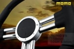 アメリカンテイストのステアリングです。グリップ部にはパフォームドレザーとLOGOが刺繍されたレザーを使い、2本の真直ぐ伸びたシルバークローム仕上げの輝くスポークとともにワイルド&マッスル感を強烈にアピールします。
