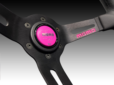インサート、ホーンボタン、ロゴにはMOMOでは初めてのピンクカラー仕様。