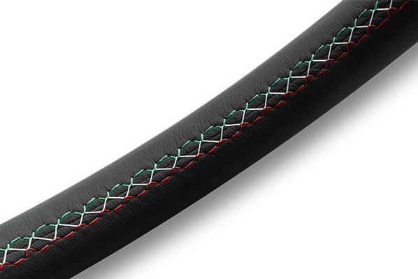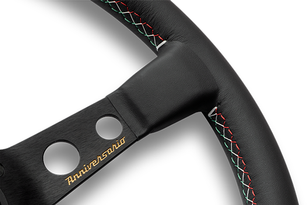 この「MOD.07」をベースに、グリップには緑・白・赤のイタリアンカラーのステッチをあしらいながら、コーポレートカラーの黒でまとめた本モデルは、MOMOのレガシーとイタリア自動車文化への敬意をあらわしています。そして、60周年の記念ロゴホーンボタン仕様はまさに、記念のアイテムです。日本では限定200本の販売になります。